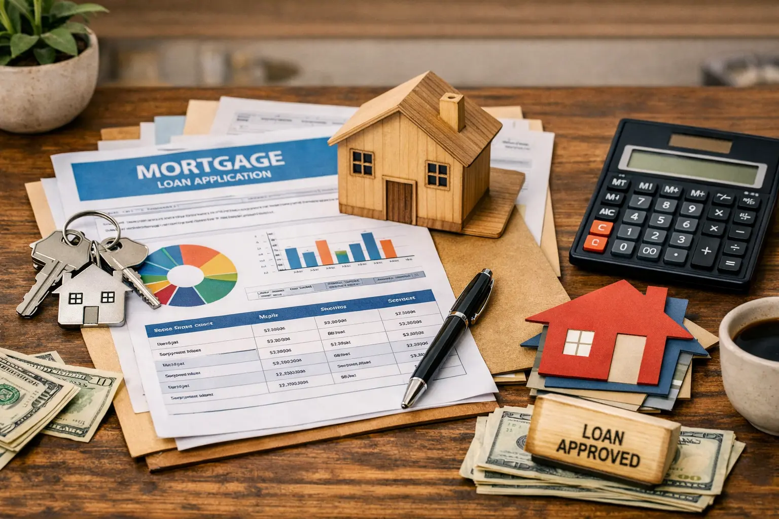 Documentos de hipoteca organizados para declaración de impuestos en Estados Unidos